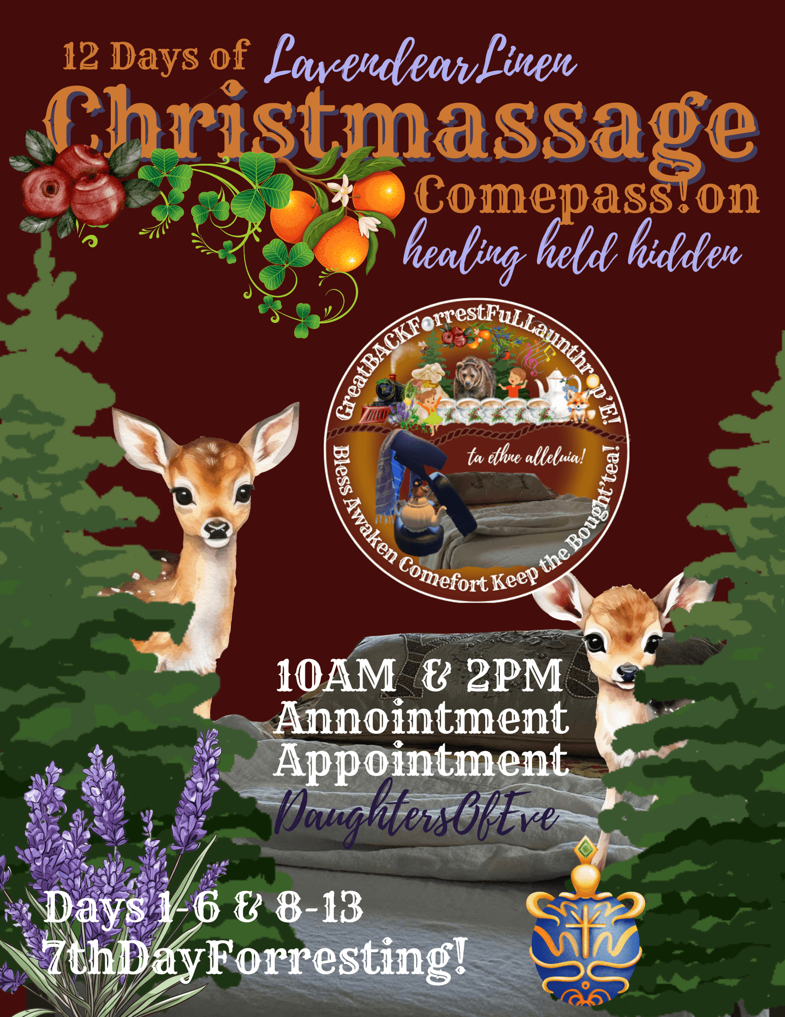 This the prayer for every Daughter of Eve that comes to receive a Lavendear Linen Christmassage. That she knows what it means to be healing-held-hidden by and in the One who loves steadfastly and perfectly, the God of All Comfort, Emmanuel, GOD WITH US.
